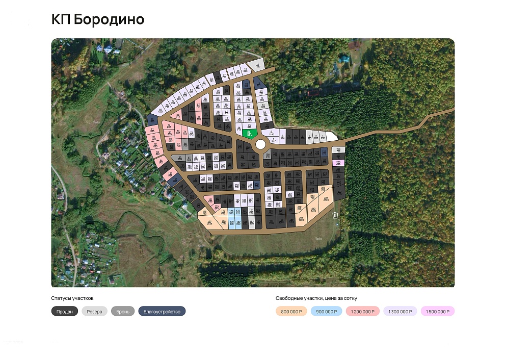 Бородино - безопасный поселок для жизни, в нем предусмотрено ограждение, уличное освещение и охрана. Для маленьких непосед установлены детская и спортплощадка. К каждому участку со статусом ИЖС возможно подключить электричество 15 кВт и магистральный газ. Южный объезд Подольска — это транспортная развязка, которая позволить владельцам участков в Бородино экономить время и выезжать в нужную сторону, не делая крюк.